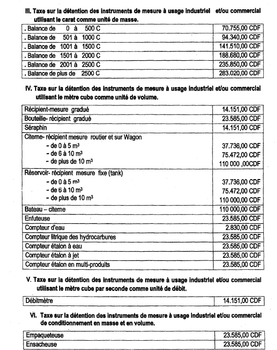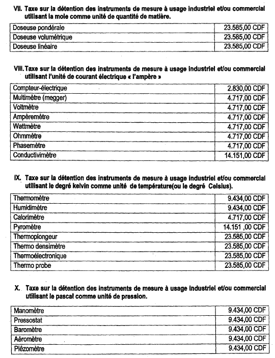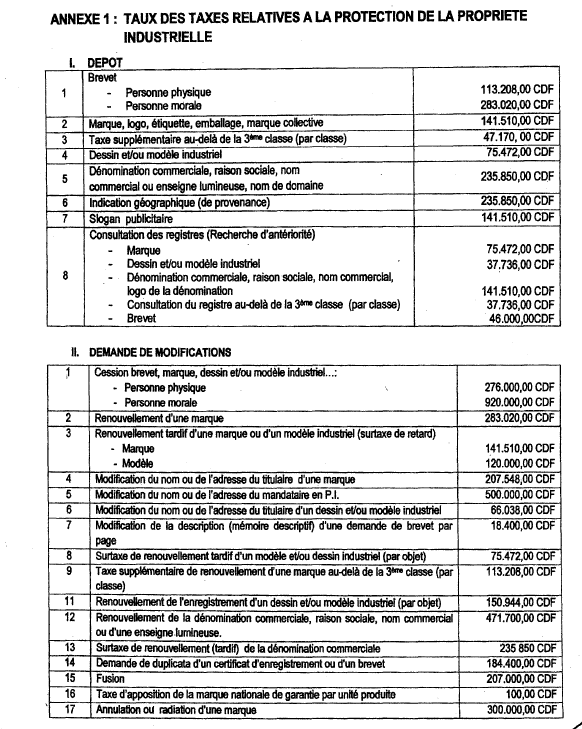 Vu l'Ordonnance-loi n°13/002 du  23 février 2013 fixant la nomenclature des droits, taxes et redevances du Pouvoir central ;
