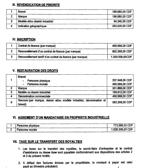 -Le paiement de la taxe de transfert des royalties doit s'effectuer endéans 8 jours à dater de la réception de la note de perception émise par la DGRAD.