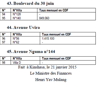 à l’Arrêté interministériel n°CAB/MINATUHITPR/ 0001/2015 et